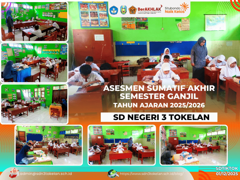 SD Negeri 3 Tokelan melaksanakan Asesmen Sumatif Akhir Semester (ASAS) Ganjil Tahun Ajaran 2025/2026 pada hari Senin, 01 Desember 2025, merupakan kegiatan evaluasi yang dilaksanakan pada akhir semester untuk mengukur pencapaian kompetensi peserta didik selama proses pembelajaran pada semester ganjil. Asesmen ini mencakup seluruh materi esensial yang telah dipelajari, meliputi aspek pengetahuan, keterampilan, dan sikap sesuai dengan capaian pembelajaran masing-masing mata pelajaran.