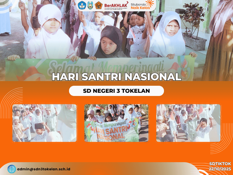 SD Negeri 3 Tokelan memperingati Hari Santri Nasional dengan penuh semangat dan kebersamaan. Kegiatan ini dilaksanakan untuk menumbuhkan rasa cinta tanah air, memperkuat nilai-nilai keislaman, serta meneladani perjuangan para santri dalam mempertahankan kemerdekaan Indonesia.
