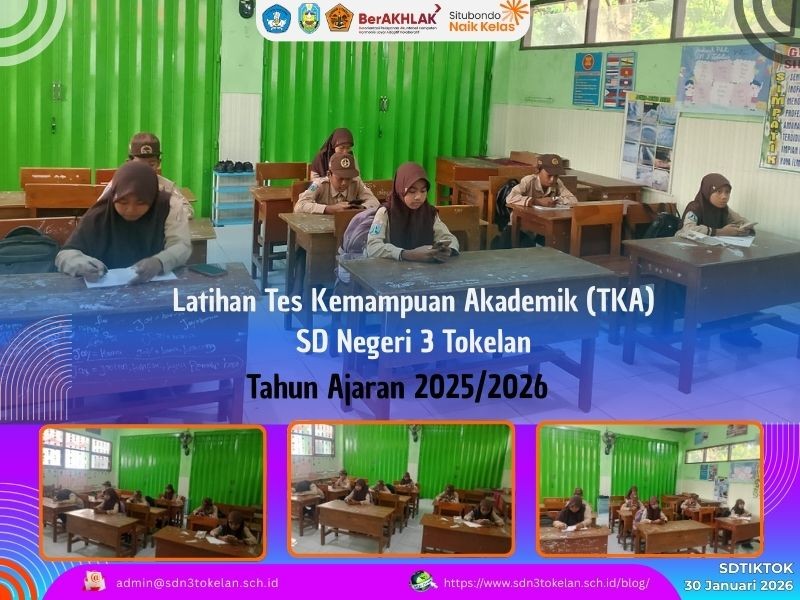 Latihan Tes Kemampuan Akademik (TKA) SD Negeri 3 Tokelan merupakan kegiatan evaluatif yang bertujuan untuk melatih dan mengukur kemampuan akademik peserta didik sesuai dengan kompetensi yang telah dipelajari. Kegiatan ini dirancang sebagai sarana persiapan siswa dalam menghadapi asesmen akademik, sekaligus untuk meningkatkan pemahaman konsep, ketelitian, serta kepercayaan diri dalam mengerjakan soal. Melalui latihan TKA ini, diharapkan siswa SD Negeri 3 Tokelan mampu mengembangkan potensi akademiknya secara optimal dan terbiasa dengan pola soal yang mengukur kemampuan berpikir logis, numerik, dan literasi dasar.