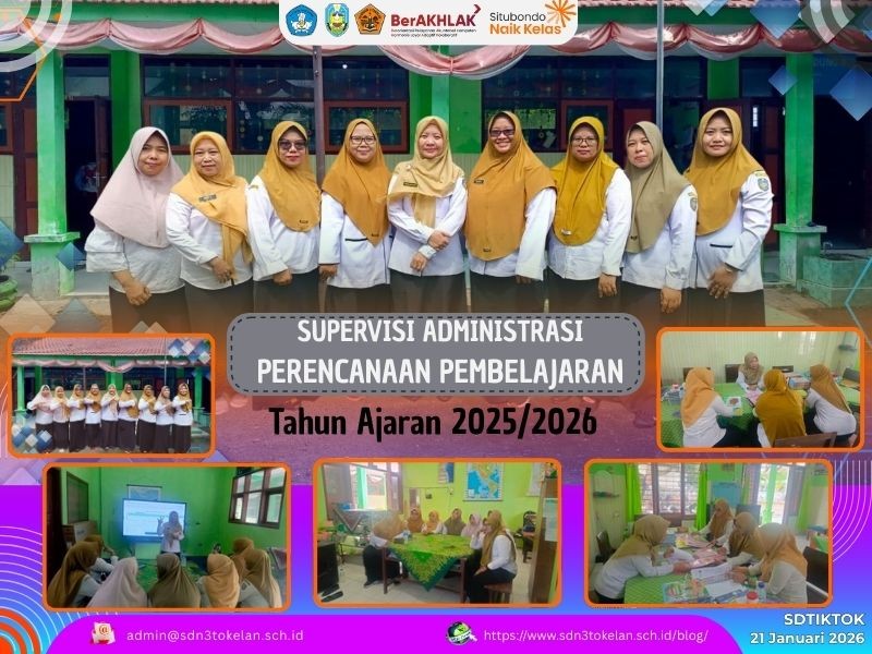SD Negeri 3 Tokelan pada hari Rabu tanggal 21 Januari 2026 melaksanakan supervisi administrasi perencanaan pembelajaran untuk semester genap tahun ajaran 2025/2026. Kegiatan ini bertujuan untuk memastikan bahwa seluruh perangkat pembelajaran telah disiapkan dengan baik dan sesuai dengan standar kurikulum yang berlaku. Supervisi ini melibatkan peninjauan dokumen seperti Perencanaan Pembelajaran Mendalam (PPM), Perencanaan ko kurikuler dan materi ajar lainnya. Selain itu, supervisi juga bertujuan untuk memberikan masukan konstruktif kepada para guru dalam meningkatkan kualitas pengajaran serta memastikan kesiapan sekolah dalam menyambut semester baru. Dengan adanya supervisi ini, diharapkan proses belajar mengajar di SD Negeri 3 Tokelan dapat berjalan lebih efektif dan efisien, meningkatkan kompetensi siswa, dan mencapai target pembelajaran yang telah ditetapkan.